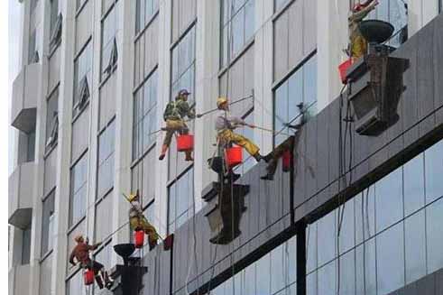 2、人員條件:外墻清洗的施工人員必須有良好的身體和心理素質(zhì),年齡應(yīng)在40歲以下,體重在60公斤以下,血壓和心臟、視力良好,一定不能有恐高癥。